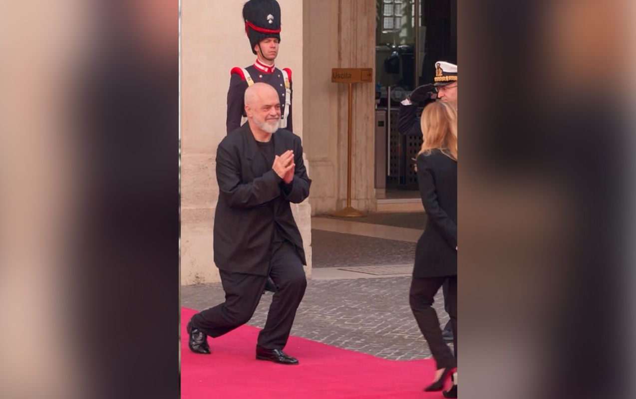Albaniyanın Baş naziri Edi Rama Romaya rəsmi səfəri zamanı italiyalı həmkarı Corciya Melonini salamlamaq üçün növbəti dəfə onun qarşısında diz çöküb.